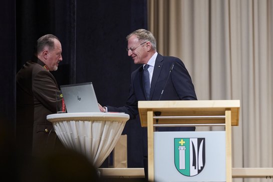 Der Landeshauptmann Mag. Thomas Stelzer bedankte sich bei dem Bezirksfeuerwehrkommando für die ausgezeichnete Arbeit und BFKdt Helmut Berc für die geleistete Arbeit in den vergangen Jahren in seiner Funktions als Bezirks-Feuerwehrkommandant.
